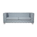 The Saree sofa uses simple lines to create a striking boxed-shaped silhouette. This sofa delivers a unique aura into any living space with its light teal chenille and white finish. It is designed using a unique knitting process that adds texture and depth; this makes the pieces bold and lively in appearance. The pocket coil seating makes it luxurious to lounge on.