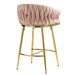 Counter Height Bar Stools Kitchen Island Counter Bar Stool With Hand - Wave Back, Golden Chromed Base And Footrest (Set of 2) - Pink