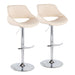 Fabrico - Contemporary Adjustable Bar Stool With Rounded T Footrest (Set of 2) - Chrome / Cream
