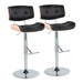 Lombardi - Contemporary Adjustable Barstool With Swivel With Straight T Footrest (Set of 2) - Chrome / Natural / Black