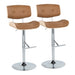 Lombardi - Contemporary Adjustable Barstool With Swivel With Straight T Footrest (Set of 2) - Chrome / Natural / Camel
