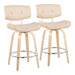 Lombardi - Mid-Century Modern Fixed Height Counter Stool With Swivel With Round Footrest (Set of 2) - Natural / Cream