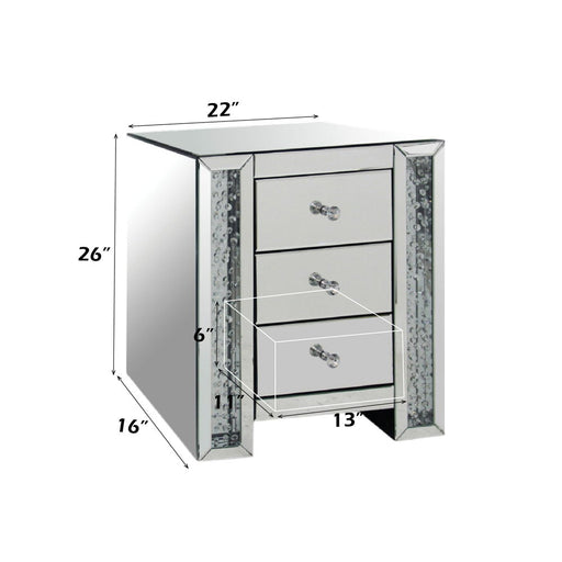 Noralie - 26" Accent Table - Mirrored & Faux DiamondsProduct Features Assembled, Rectangular Night Table Storage: 3 Drawer Features: Mirrored F...