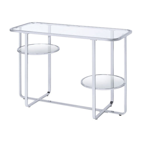 Hollo - Sofa Table - Glass & ChromeProduct Features KD, Rectangular Sofa Table Storage: Open Compartment (1 Mirrored Shelf, Fixed) Features: Gl...