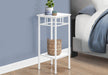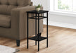 - Design & Structure: This 2-tier accent table features a square tabletop and two storage shelves, all in a sleek finish. It is supported by a slender yet sturdy metal base, combining modern aesthetics with functionality.