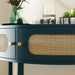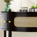 - Smart & Stylish Storage: Two handwoven rattan-front drawers provide discreet storage, with a spacious top and lower shelf for decor.