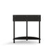 Boho Rattan Semi Circle End Table With Sliding Door, Elegant Wood Accent Table With Storage And Bottom Shelf - Black
