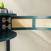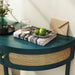 Boho Rattan Semi Circle End Table With Sliding Rattan Door, Elegant Entryway Console With Storage And Bottom Shelf - Antique Green