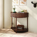 Artisan Crafted Wave Pattern Demi Lune Console Table With Brown Woodgrain, Unique Half Moon Design End Table With 2 Storage Drawers And Bottom Shelf For Living Room, Bedroom, Study, Hallway - Brown