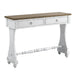 - Design and Functionality: The Carminda Antique White Finish Console Table offers a classic rectangular design with two storage drawers, providing a functional and stylish accent piece for any room.