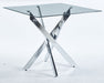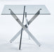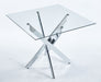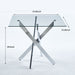 Dining Table With Cross Metal Leg And Tempered Glass, Modern Space Saving Kitchen Table For Living Room Legs, Square Table - Chrome