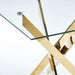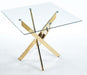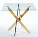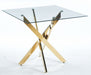Dining Table With Cross Metal Leg And Tempered Glass, Modern Space Saving Kitchen Table For Living Room, Chrome Legs, Square Table - Golden