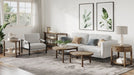 Create an interior with modern organic style by incorporating tables from the Hadleigh collection. Naturally curvaceous shapes and a smooth Honey finish over oak veneers distinguish these designs and establish the group's casually elegant vibe. Hadleigh is thoughtfully scaled to fit in both large and small living spaces while providing storage and display functionality. Its handsome character includes details such as matching wood hardware, shaped bottom shelves, and a nesting Cocktail Table that can be used as one or two pieces. Multiple table shapes and sizes ensure this minimalist-inspired collection will integrate seamlessly with any seating area while adding signature style.