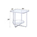 - Features: Glass Top, Mirrored Shelf, Metal Sled Base (Open Base)