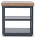 This accent table set combines casual contemporary design with modern appeal. With thick-bodied wood-tone tabletops and on-trend slate blue frames and shelves, these tables are a smart choice on so many levels. And casters on the coffee table's legs make it easily mobile for quick room transformations. This three-in-one pack is more than just nice furniture anchoring your sofa.