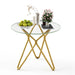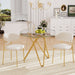 Modern Round Tempered Glass Dining Table With Sturdy Metal Legs For 1 - 4 People - Gold