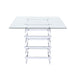 The Nadie counter height table features bold and light weight architectural lines. The chrome finished legs and stretchers create the implied sturdy box base, creating different patterns from all views. Contrasting with the 42" square glass top, this dining table will definitely turn your dining area to an incredible modern living space.