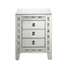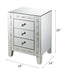 Style and storage abound in the pretty and practical design of the Nasa Side Table. Three drawers offer plentiful enclosed storage for remotes, magazines, or any other items you prefer to keep close at hand. Its three drawers boast crystal knobs and framed by mirrored glass panels with mother pearl stones inlay trim.