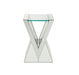 Brighten up your space with this stunning end table. With its distinctive V shaped pedestal base, this table is one your friends and family will all be envious of and will be talking about for years to come. The faux diamond inlay adds the right amount of texture and will reflect light magically. Glam meets function with its ample glass table top. You will be able to store and display all your goods.
