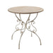 Round Wooden Table With Metal Scrollwork Legs - White Washed
