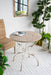 - Farmhouse Style: This table features a circular wooden top with a white finish and intricate metal scrollwork legs, adding farmhouse charm.