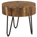 Contemporary Rustic Wood Round End Table With Iron Hairpin Legs - Black / Brown