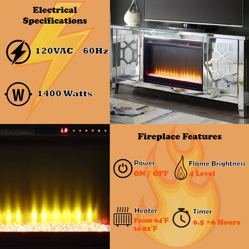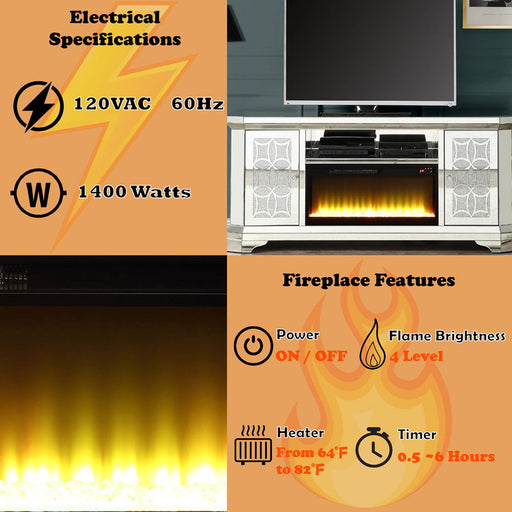 Noralie - TV Stand With Fireplace - Mirrored & Faux DiamondsProduct Features LED Electric Fireplace Beveled Mirrored Frame, Faux Diamonds Inlay...