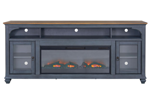 For TVs up to 80 inches Cable management openings on back panel Two framed glass doors Three shelves Fireplace insert 28-1/2 inches wide x 17 inc...