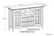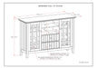 - Transitional design includes molded table top, beaded drawer fronts and sides,lightly tapered legs, tempered glass doors with cross hatch style mullions and brushed nickel hardware