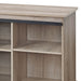 - Design & Style: The Bennet Oak Finish TV Stand features a rectangular design with a rustic touch, highlighted by two sliding barn doors. This stylish piece can accommodate TVs up to 65 inches, making it a perfect fit for modern living rooms.