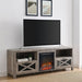 Industrial Farmhouse Metal Mesh Drop Down X Door 70" Fireplace TV Stand For 80" TVs - Gray Wash