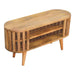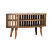 - Artisan Furniture Solid Wood Mini Ariella Media Unit - Update your home with our Ariella Media Unit boasting a contemporary Japanese design allowing light to shine through and is constructed from 100% solid mango wood in an oak-ish finish. This is a versatile piece and is perfect for use in the living room.