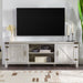Rustic Farmhouse Double Barn Door 70" TV Stand For 80" TVs With Center Shelves - Gray Wash