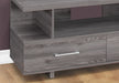 - Versatile Fit: Finished in a stylish grey wood-look, it accommodates all TV sizes with a center pedestal stand, adding a contemporary touch to any room.