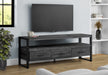 - Design and Finish: The TV stand boasts a contemporary, industrial-inspired design, finished in a rustic black reclaimed-look, offering a modern touch to any living space.