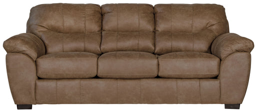 BRADSHAW is an extra-wide two-seat design featuring a decorative pub back and a faux leather fabric. Bradshaw - Queen Sleeper - Mushroom95.0"W x 43...