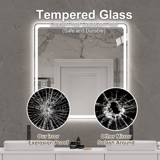 LED Bathroom Mirror, Anti Explosion Glass, Rust Resistant, Anti Fog, Tri Color