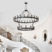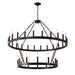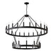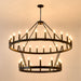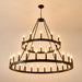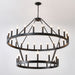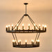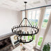 2 Tiers Wagon Wheel Chandelier Wooden Farmhouse 36 Light (24 / 12) Or (12 / 24) Metal Chandeliers 2 Story Light Fixtures Industrial For High Ceiling Living Dining Room Foyer, Adjustable Height - Black