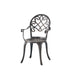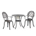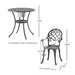 • Durable Construction: Crafted from cast aluminum, this bistro set offers durability and sturdiness, making it suitable for outdoor use and resistant to rust and corrosion.