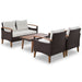 4 Piece Garden Furniture, Patio Seating Set, Outdoor Sofa Set, Wood Table And Legs - Brown / Beige