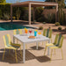 4 Piece Set Of Modern Striped Color- Blocking Single Chairs With Long Table