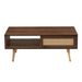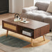 Rattan Coffee Table Sliding Door For Storage Legs Modern Table For Living Room - Walnut
