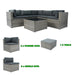 6 Pieces PE Rattan Sectional Outdoor Furniture Cushioned Sofa Set Wicker - Gray