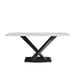 70.87" Modern Artificial Stone White Curved Black Metal Leg Dining Table, Can Accommodate 6-8 People - White / Black