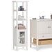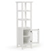 - Features one (1) door with one (1) adjustable interior shelf and three (3) open shelves. Brushed nickel hardware