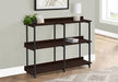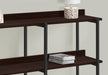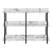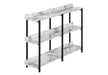 - 3-Tier Design: This console table features a long, rectangular tabletop and two additional storage shelves, all designed with finish to provide a sleek and symmetrical display piece.