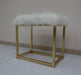 Adao - Vanity Mirror & Stool - Faux Fur, Mirror, White & Brass