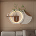 Adjustable 3 Color LED Sandstone Double Disc Wall Art With Simulated Greenery, Vase & Rabbit Statue - Light Coffee