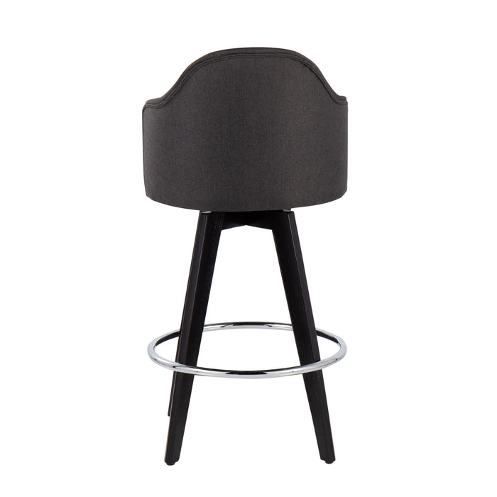 Ahoy - Contemporary Fixed Height Counter Stool Round Chrome Footrest (Set of 2) - Charcoal / Black