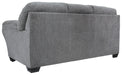 Why sacrifice comfort for style (or style for comfort) when you can have the best of both in this sofa in pewter gray. Elements include a chic divided-back design and pillow top wrapped armrests that make nodding off all too easy. Calling attention to the elegantly flared armrests—black nickel-tone nailhead trim for a punch of cool character.